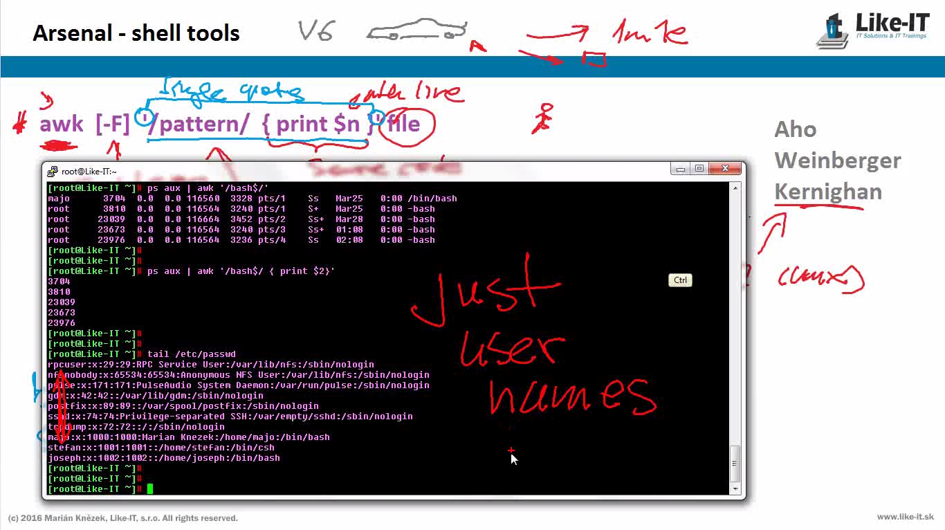 | Arsenal of shell tools: awk - string conditions | 5 min | |